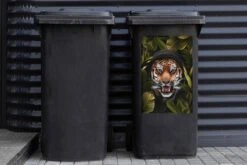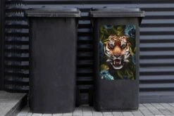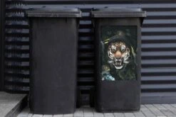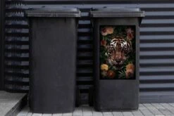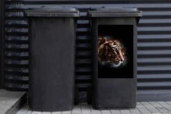 Sticker Conteneur TigreIllustrations De NoĂ«l – CĂ´tĂ© D’un Tigre Sur Un Fond Noir Avec Des Branches