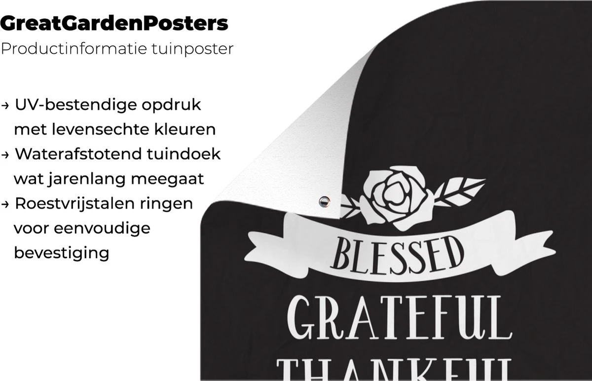 Les affiches de jardin, également appelées toile de jardin, sont des affiches spécialement adaptées pour être suspendues à l’extérieur. Cette nappe de jardin peut donc prendre une raclée. La voile Bisonyl a été utilisée pour cette affiche extérieure. Cette voile est une bâche enduite avec une belle finition. L’affiche de jardin est résistante aux UV, elle ne se décolore donc pas au soleil. Un anneau a été placé dans chaque coin du tissu, afin que vous puissiez facilement accrocher le tissu. Le tissu peut résister aux différentes conditions météorologiques et durera au moins 3 ans.