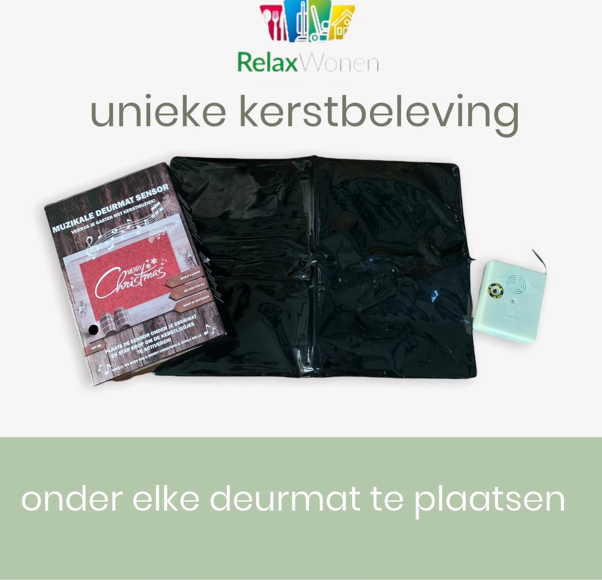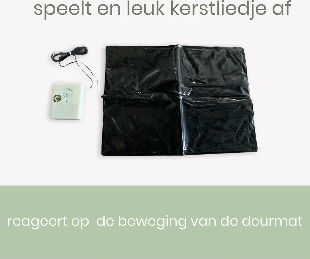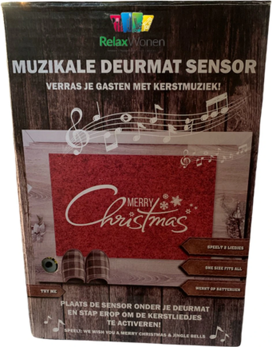 Vous aussi, vous souhaitez offrir aux passants un moment de Noël unique ? Alors le capteur de paillasson Relaxwonen Christmas est fait pour vous. Placez le capteur sous votre paillasson, il peut être placé sous n’importe quel paillasson. Lorsque quelqu’un franchit le paillasson, le capteur joue une chanson de Noël.