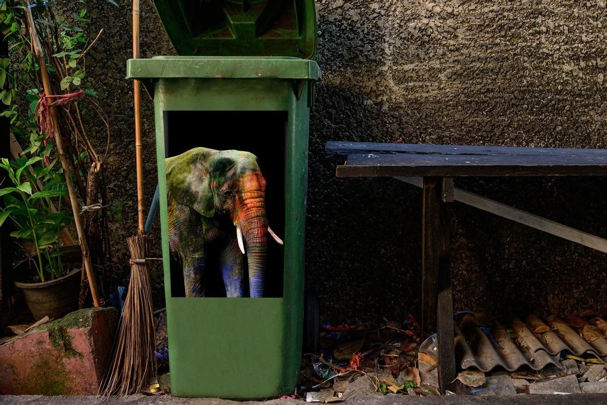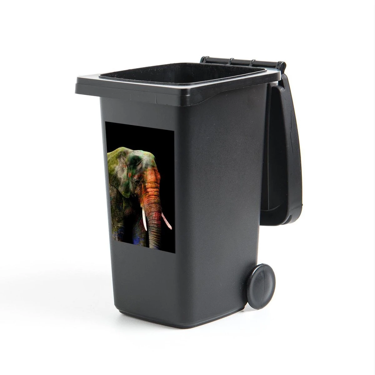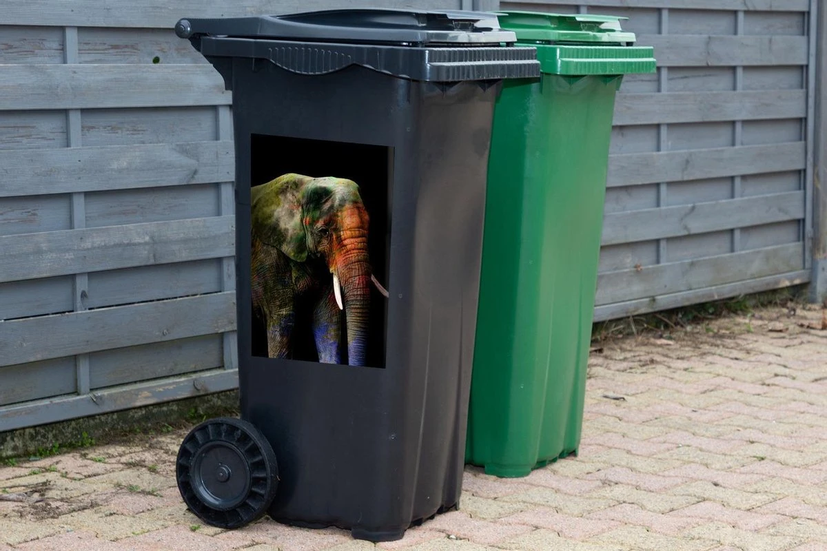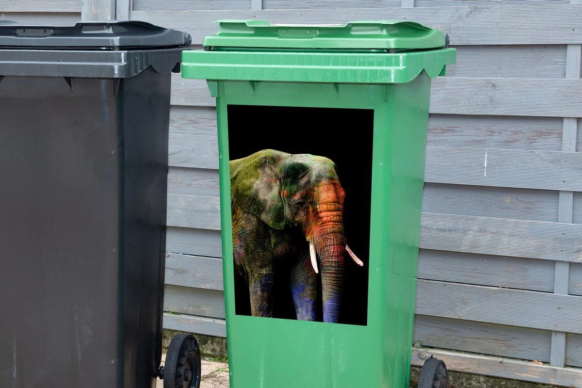 Sticker Conteneur ÉléphantIllustrations De Noël – Éléphant Avec Des Couleurs Sur Fond Noir