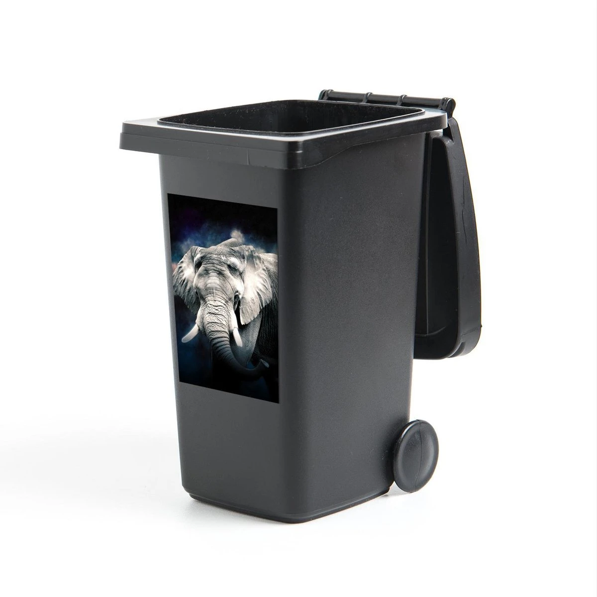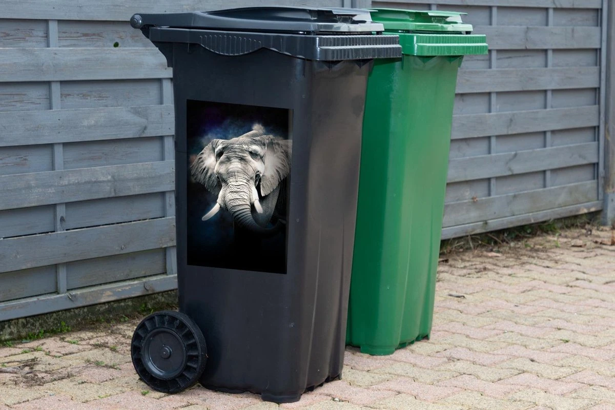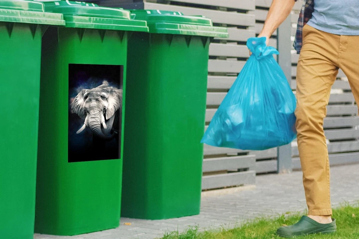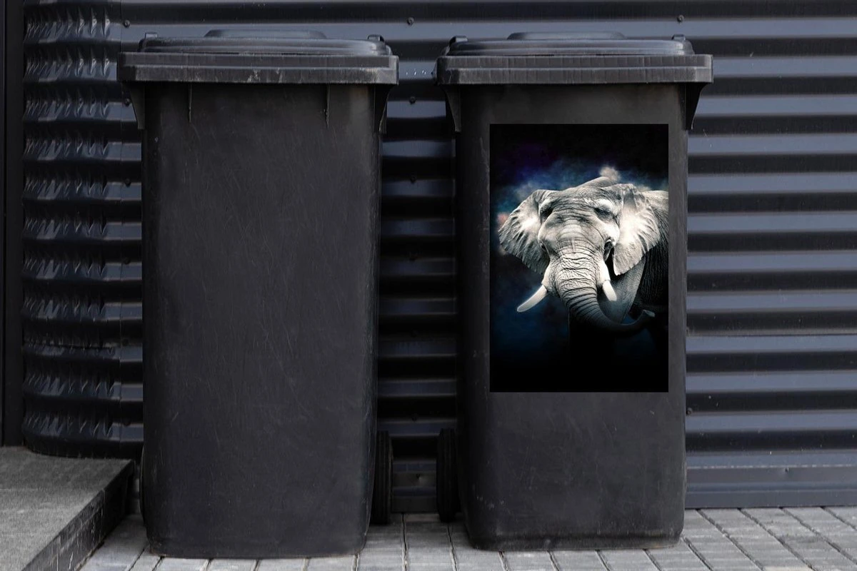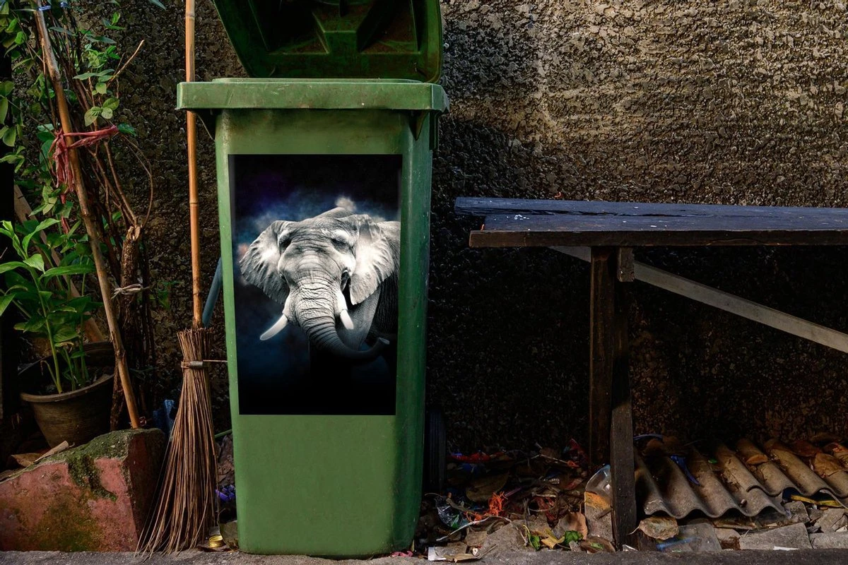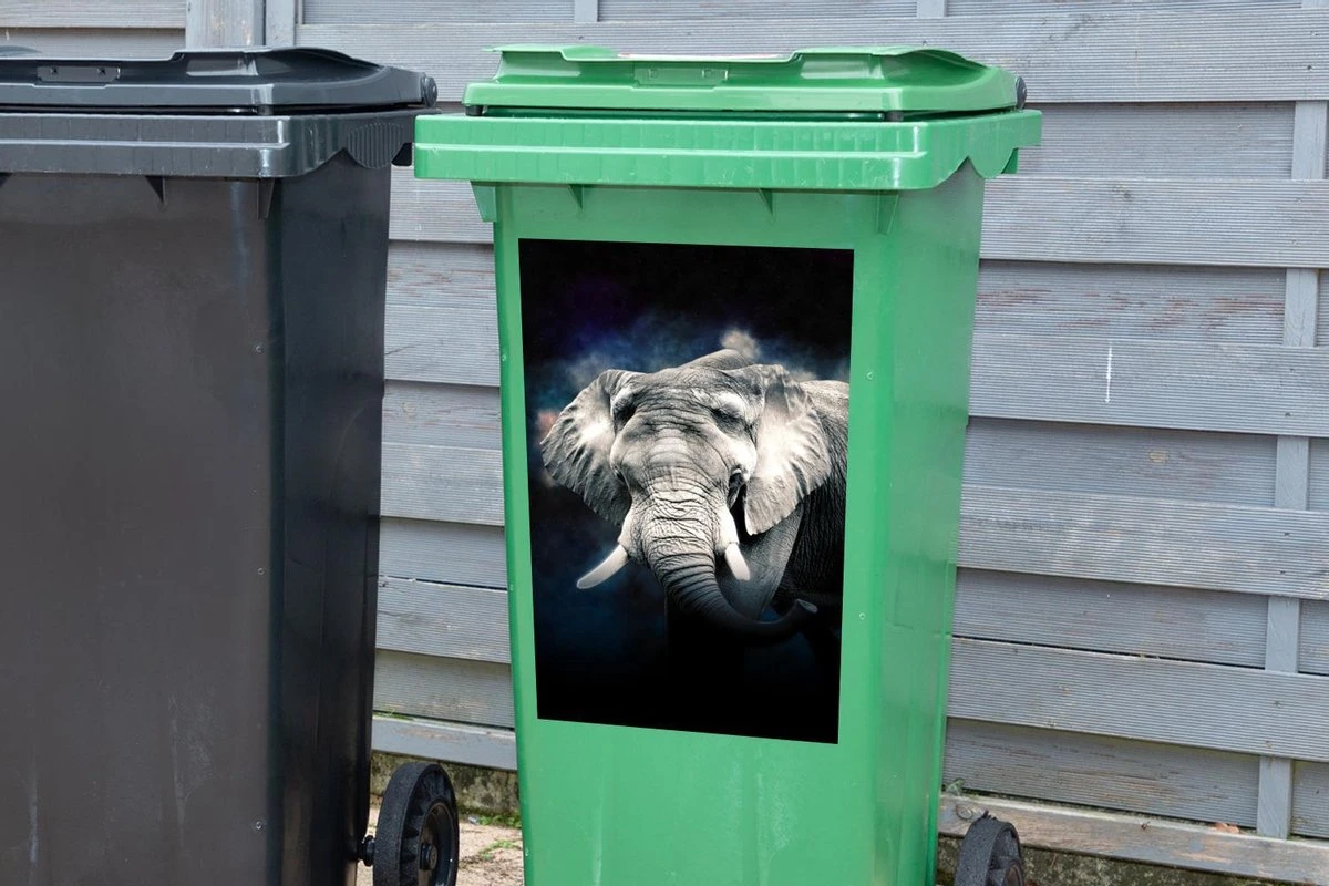 Sticker Conteneur ÉléphantIllustrations De Noël – Éléphant Dans Un Brouillard Coloré Sur Fond Noir