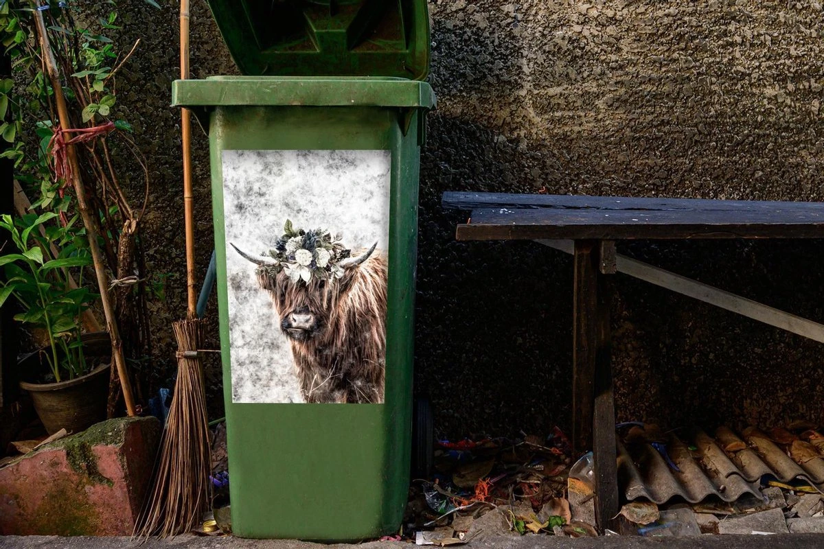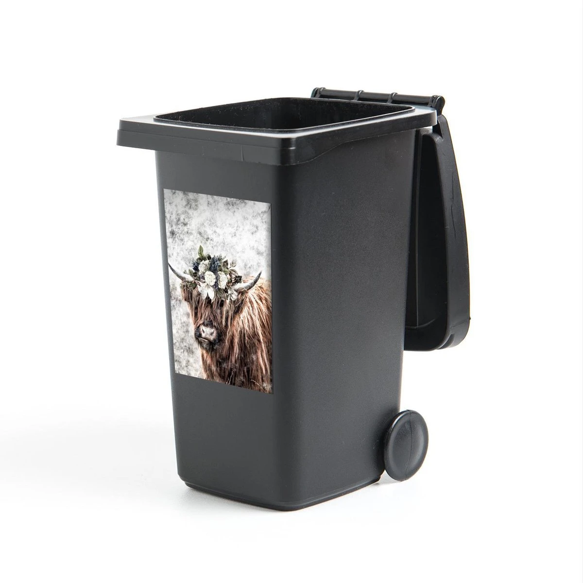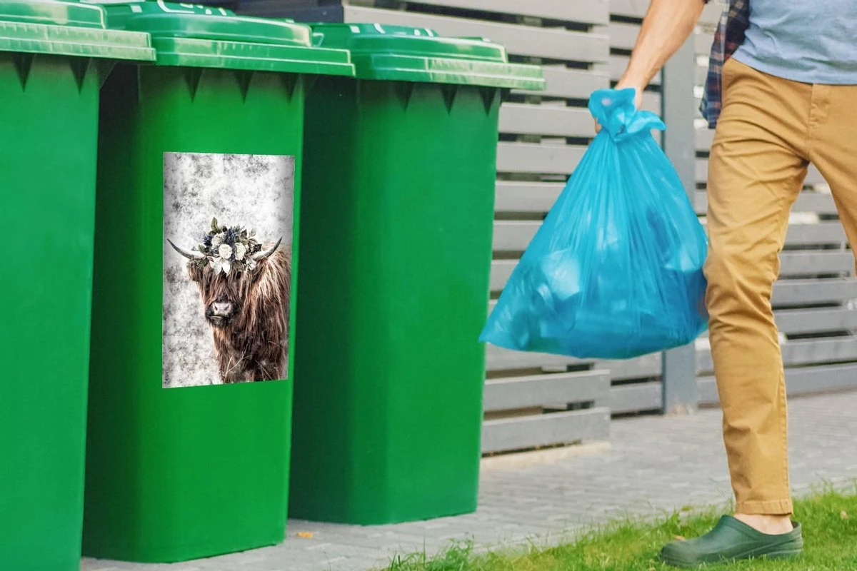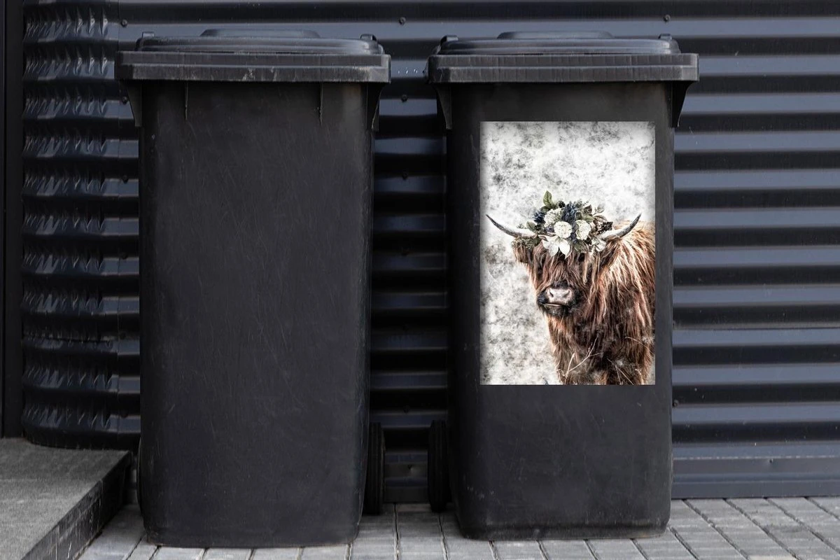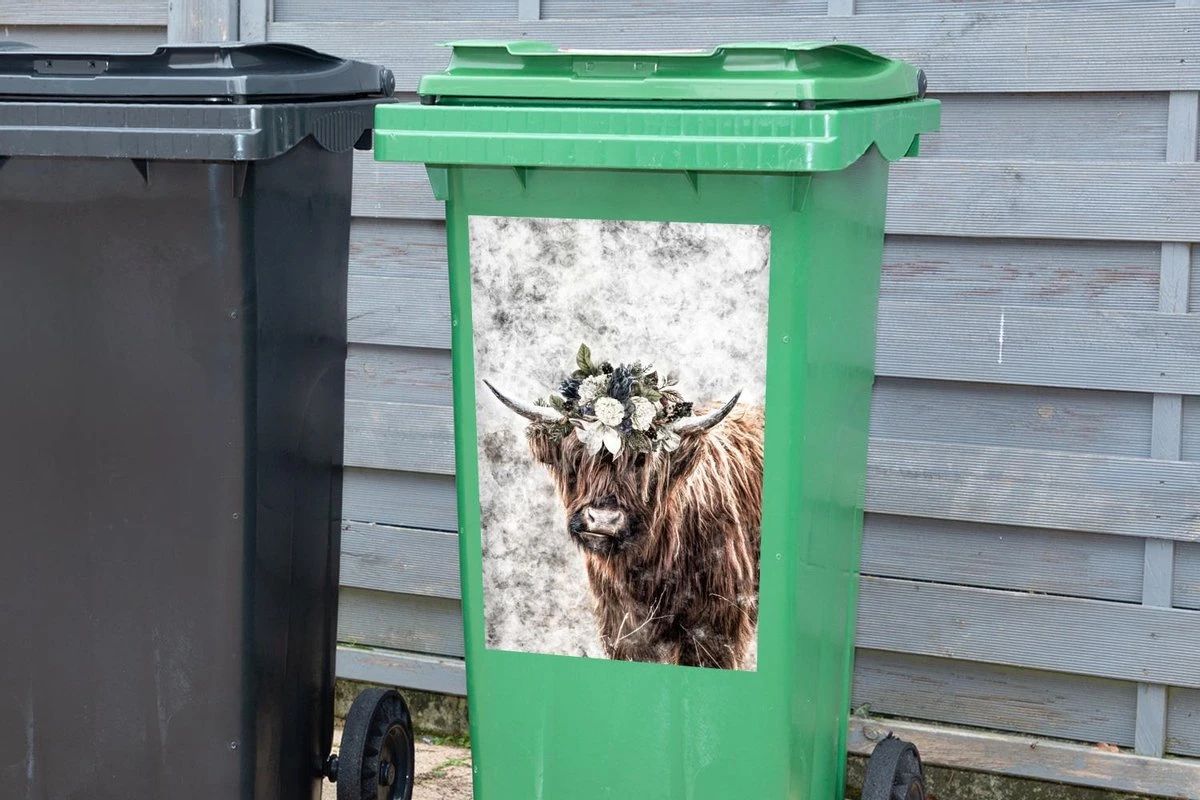 Sticker Conteneur Scottish HighlanderIllustrations De Noël – Highlander écossais Avec Une Couronne De Fleurs