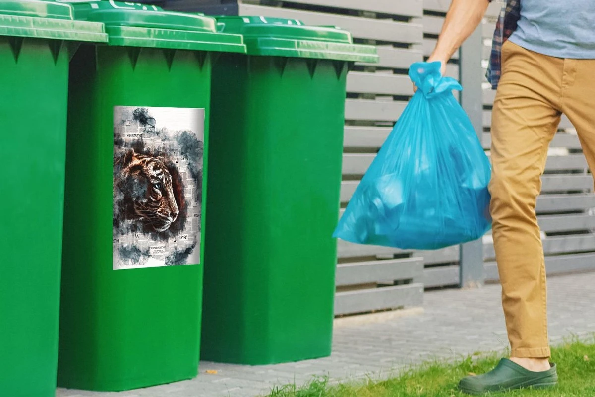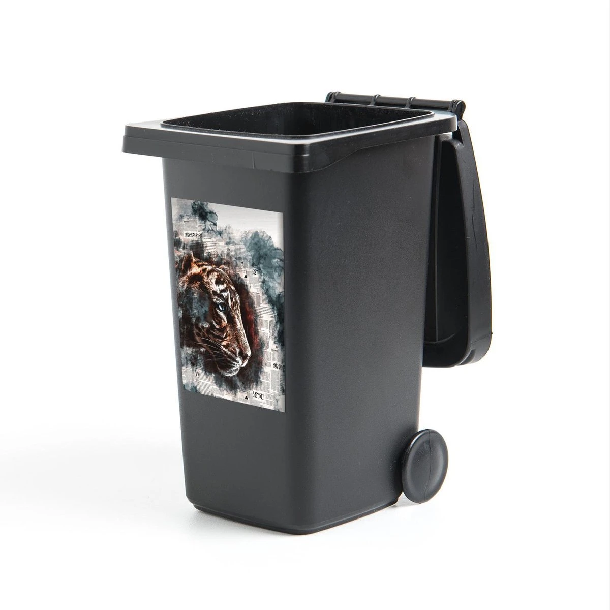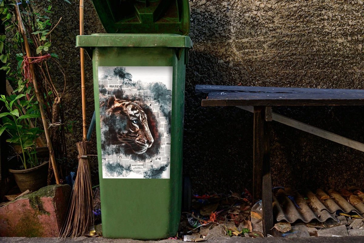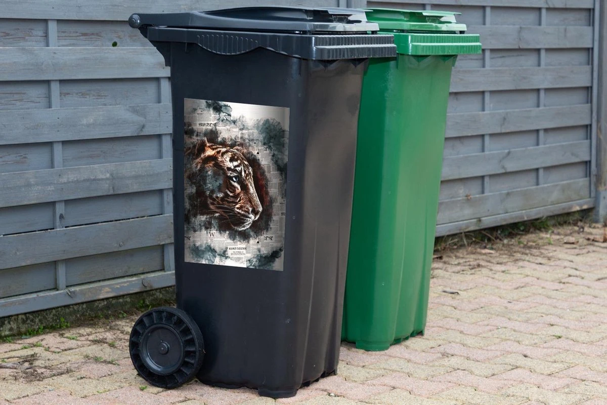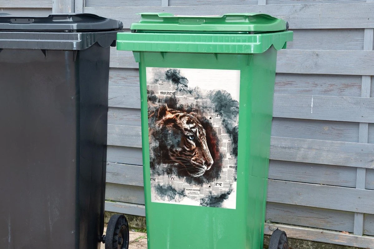 Sticker Conteneur TigreIllustrations De Noël – Tête De Tigre Sur Fond De Journaux