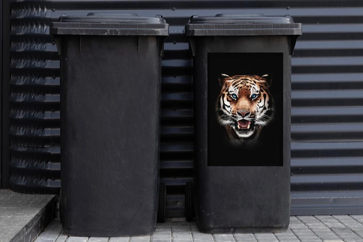 Sticker Conteneur TigreIllustrations De Noël – Tête De Tigre Sur Fond Noir