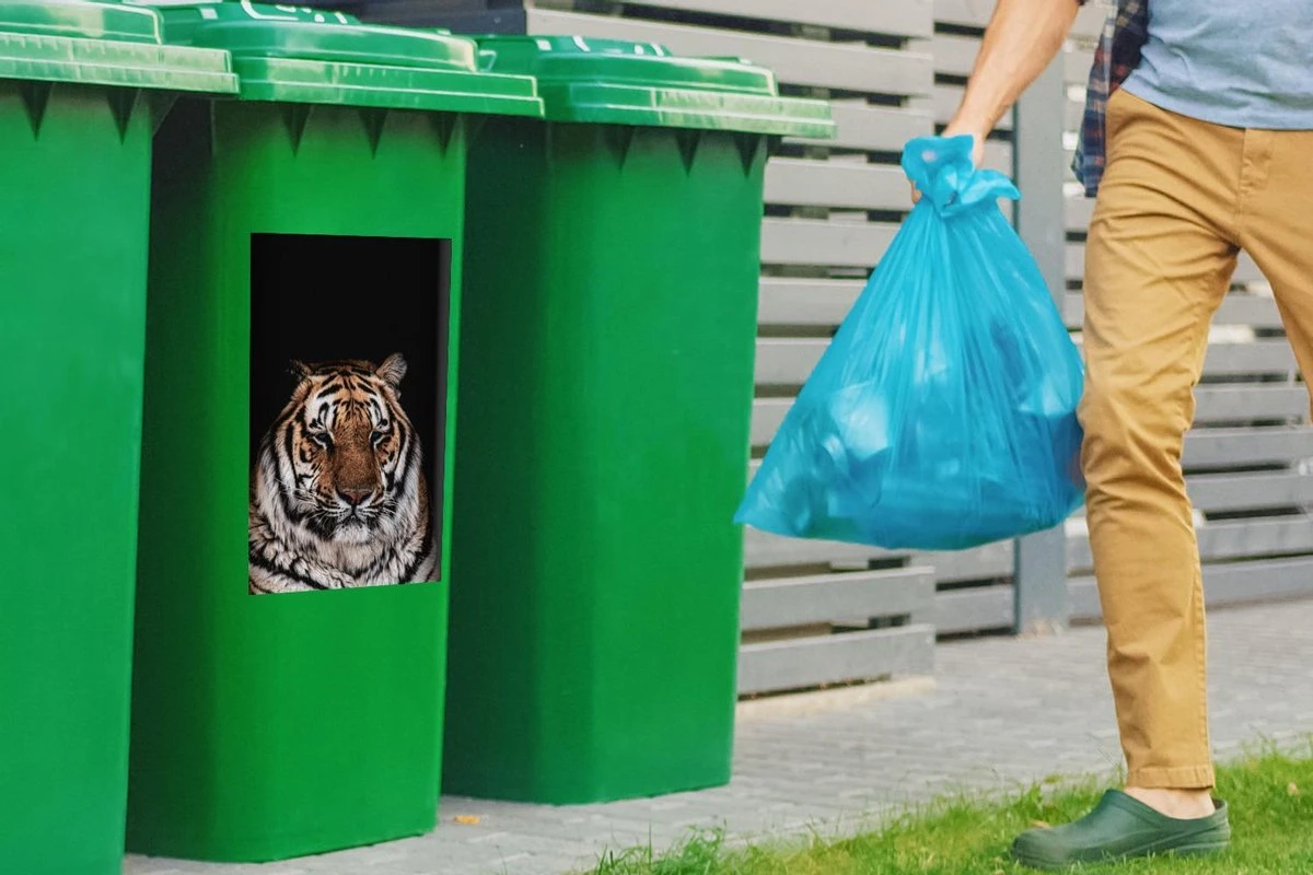 Sticker Conteneur TigreIllustrations De Noël – Tigre Endormi Sur Fond Noir
