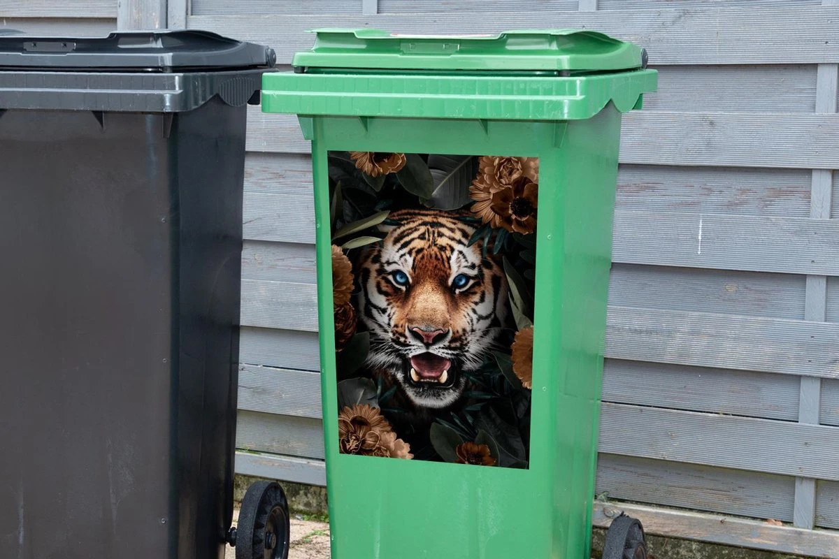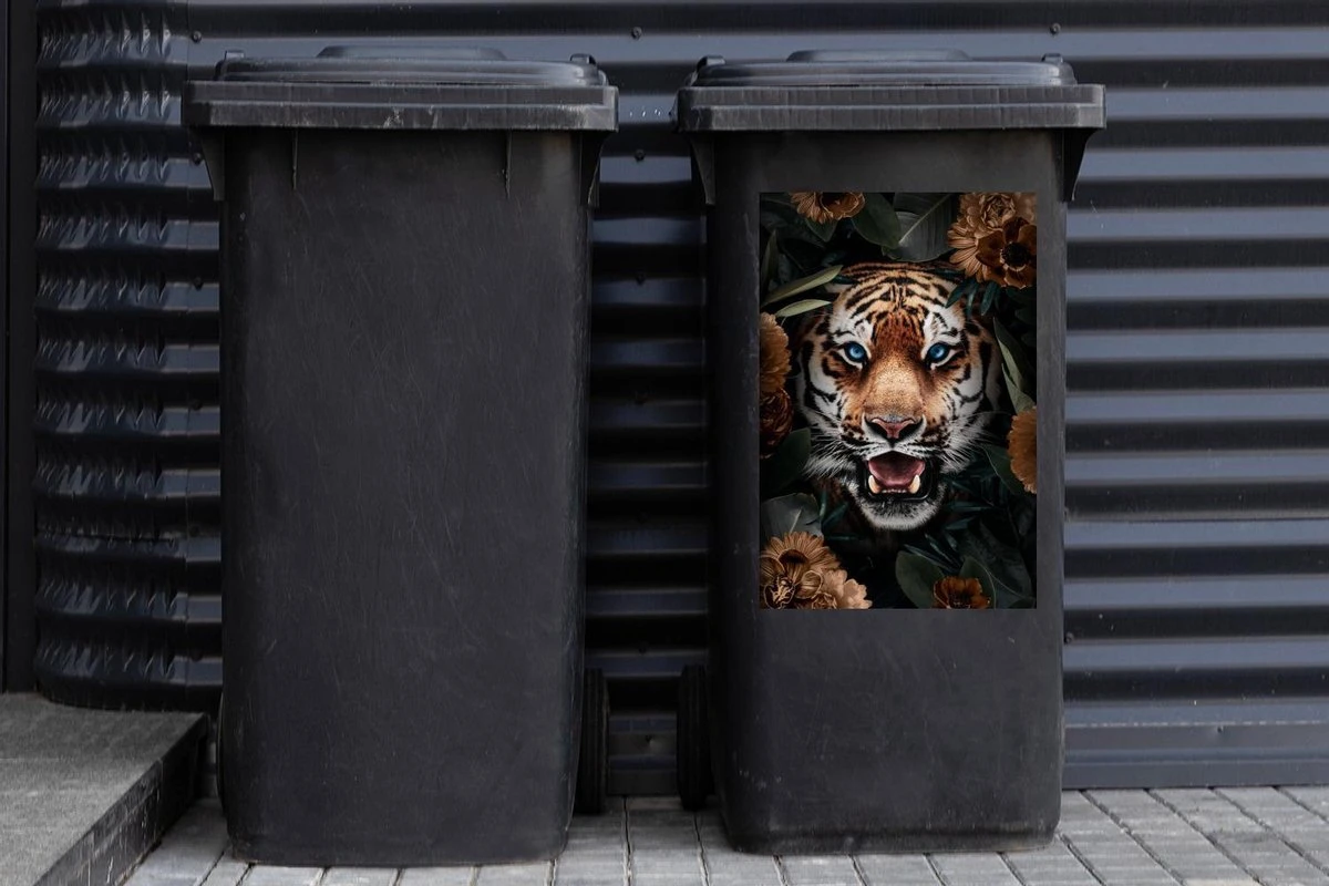 Sticker Conteneur TigreIllustrations De Noël – Tigre Parmi Les Fleurs Brunes