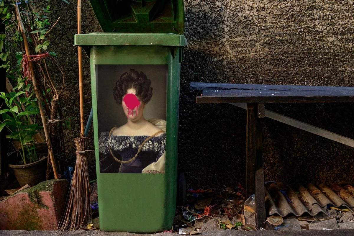 Sticker Conteneur Vieux MaîtresIllustrations De Noël – Johanna Henriette Anges Du Vieux Maître Alexandre Jean Dubois Drahonet Avec Goutte De Peinture Rose