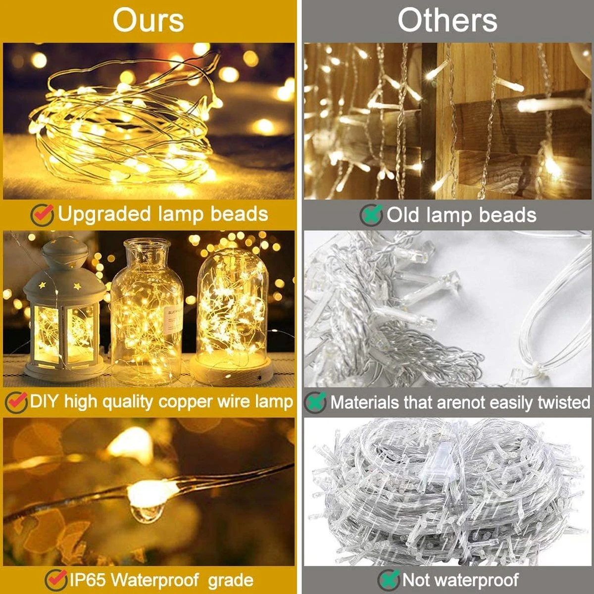 - 【【Qualité et étanche】 Rideaux lumineux féeriques 3M* 3M avec 300 LED, blanc chaud 3000K pour un effet diffus de type diamant autour de vos belles décorations, brin principal 3M , 10 cordes, fil de plastique et de cuivre avec revêtement isolant UL agréé.