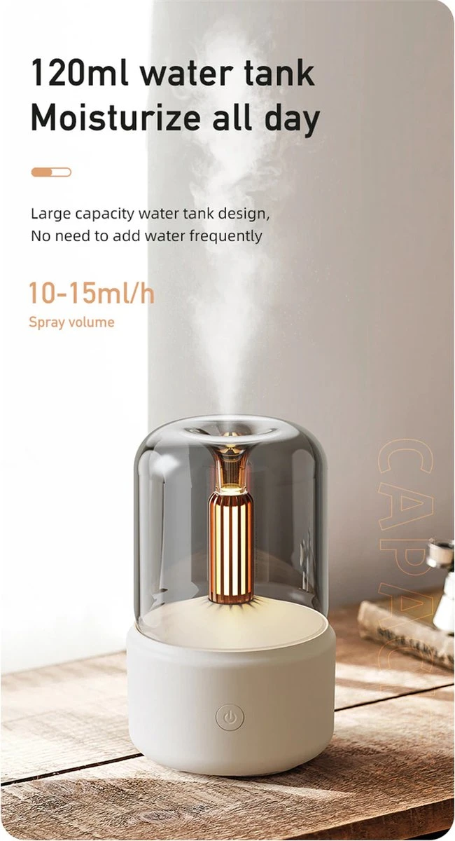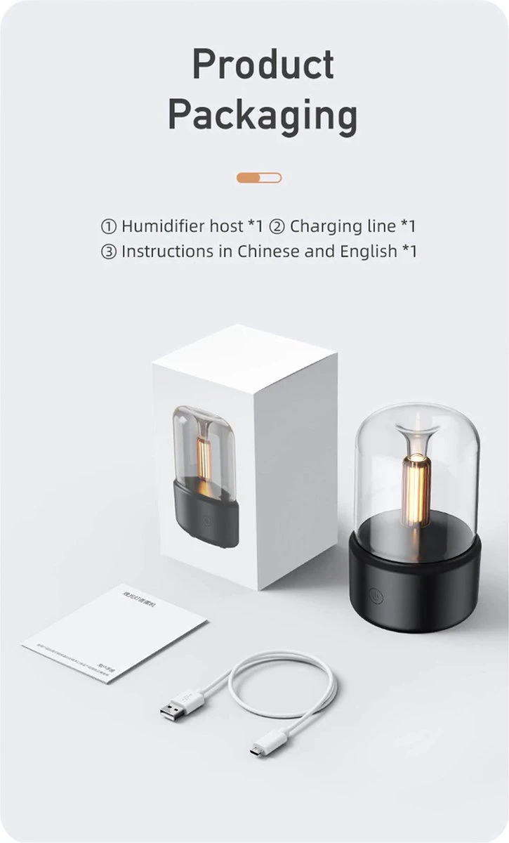 Argument de vente du produit : effet d’éclairage à la bougie simulé ; Le réservoir d’eau en matériau PP peut ajouter une nébulisation d’aromathérapie aux huiles essentielles; Puce intelligente intégrée, protection contre les pénuries d’eau et les pannes de courant.