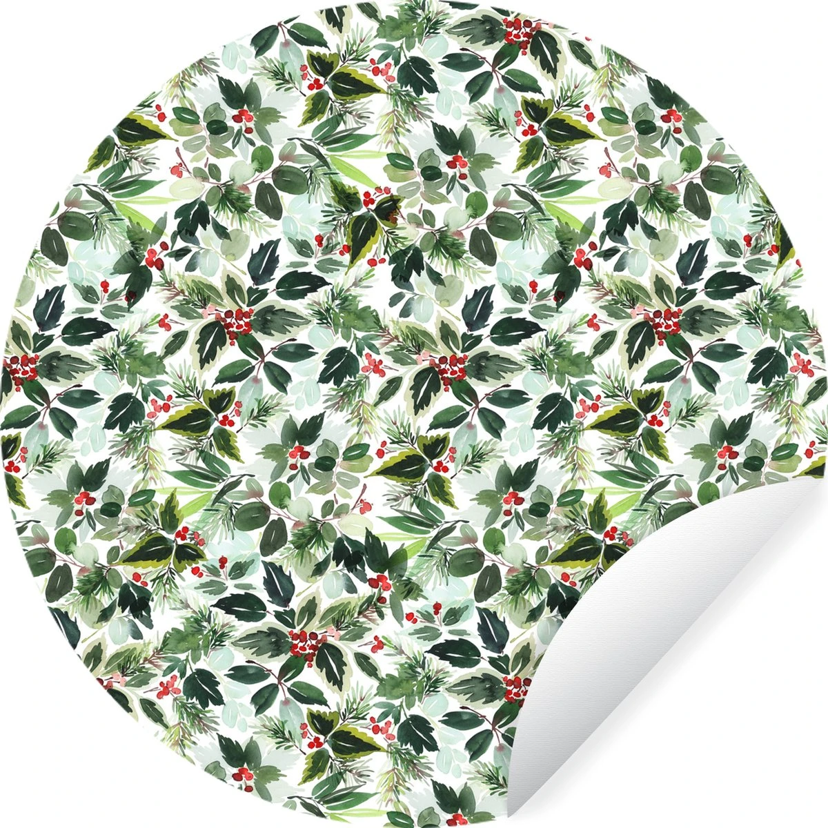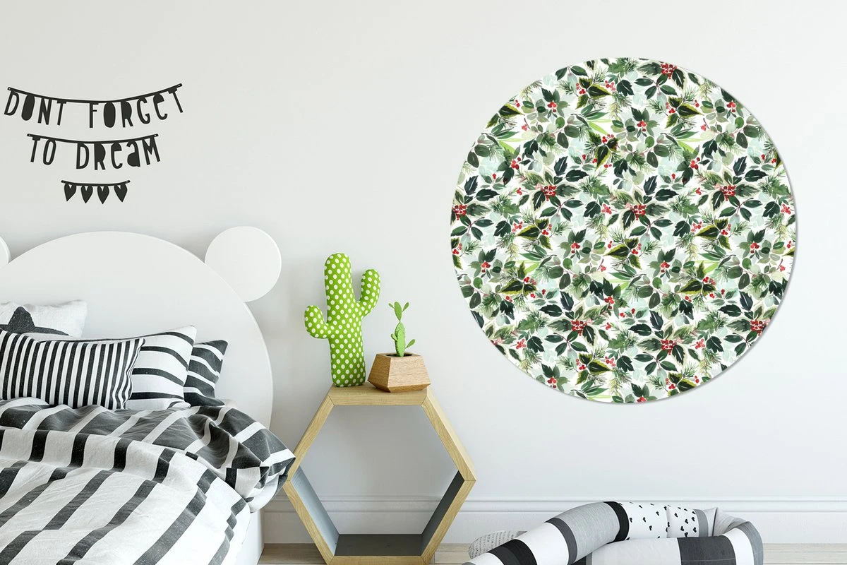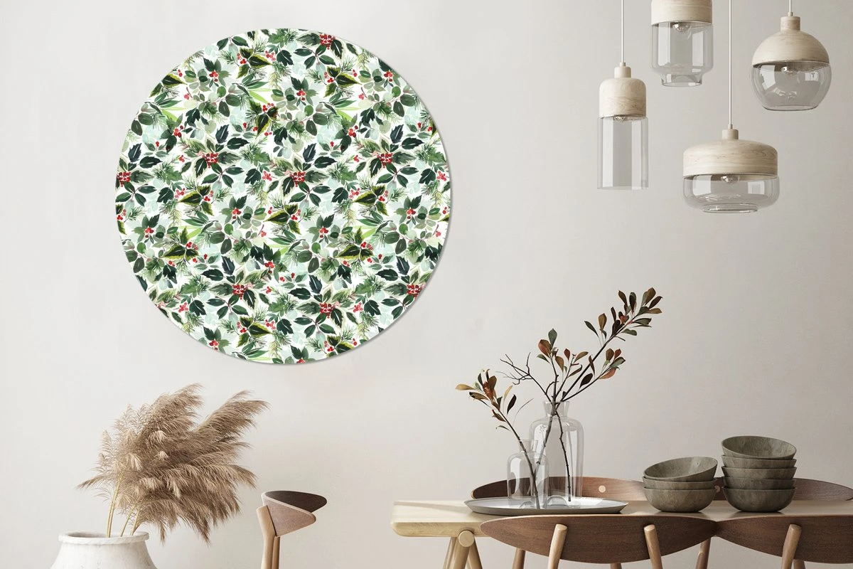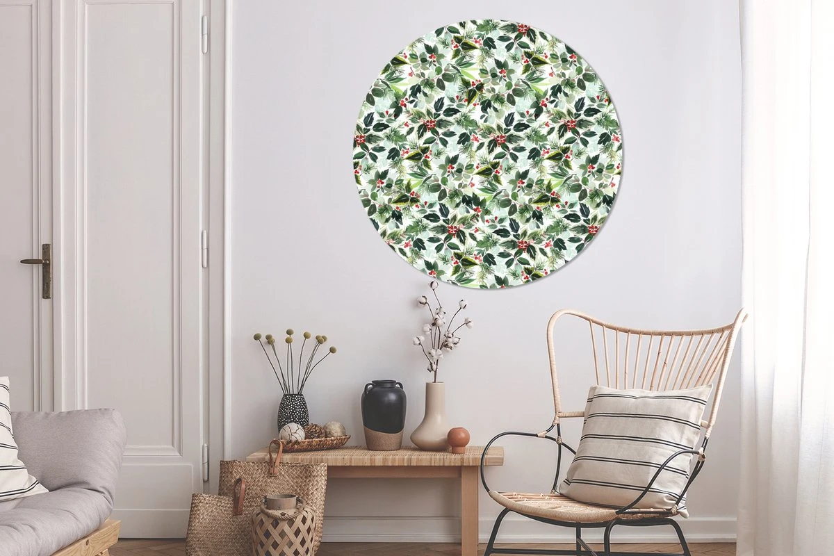 Papier peint autocollant cercle – Gui – Noël – Aquarelle – Motif – Salon – Chambre